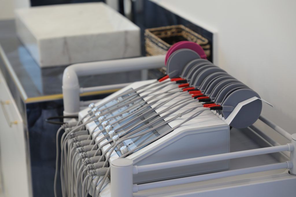 Κατά τη διάρκεια της θεραπείας, ο ειδικός τοποθετεί κεφαλές Medi Slim στις περιοχές εφαρμογής.